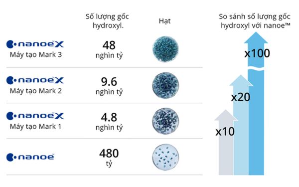 Công nghệ nanoe™ X thế hệ mới tạo ra lượng lớn gốc OH (hydroxyl) với khả năng ức chế và loại bỏ hiệu quả các tác nhân ô nhiễm trong không khí như vi khuẩn, virus, nấm mốc, chất gây dị ứng, phấn hoa, các hợp chất độc hại và mùi khó chịu. Không chỉ nâng cao chất lượng không khí, nanoe™ X còn góp phần duy trì độ ẩm tự nhiên cho da và tóc, mang đến không gian sống trong lành, dễ chịu và đậm chất chăm sóc sức khỏe.
