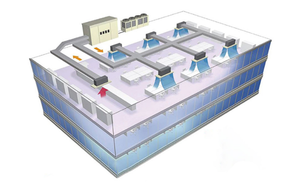 Điều hòa trung tâm VRV/VRF là hệ thống điều hòa không khí quy mô lớn, trong đó một dàn nóng công suất cao được kết nối với nhiều dàn lạnh bên trong tòa nhà thông qua hệ thống ống gió hoặc ống dẫn môi chất lạnh. Nhờ đó, chỉ với một hoặc một tổ dàn nóng, toàn bộ công trình có thể được làm mát đồng bộ và hiệu quả.