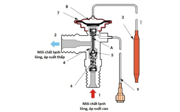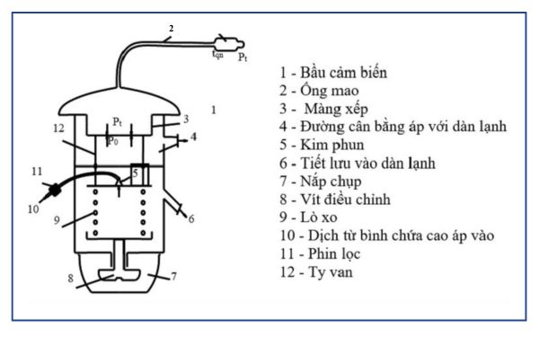 | Bầu cảm biến nhiệt | Nhận biết sự thay đổi nhiệt độ và tự động điều chỉnh hoạt động của van sao cho phù hợp với nhu cầu làm lạnh |